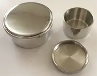 Plain round pewter boxes with lids, either satin or bright finish. Wonderful to apply your piece for a finished look. These are not for firing in the kiln as pewter cannot withstand firing temperatures. Choose your finish. We have found that mat finished pieces look great on the satin finish boxes, while flash fired pieces look very good on the bright finish boxes.
